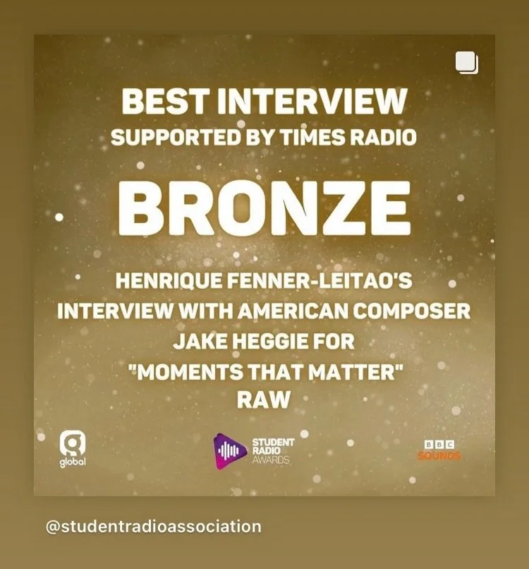 On 14th November 2023, “Moments that Matter” was awarded with the 3rd “Best Interview” across the entire United Kingdom at the national 2023 Student Radio Awards, hosted by BBC Sounds and Global Media & Entertainment.
